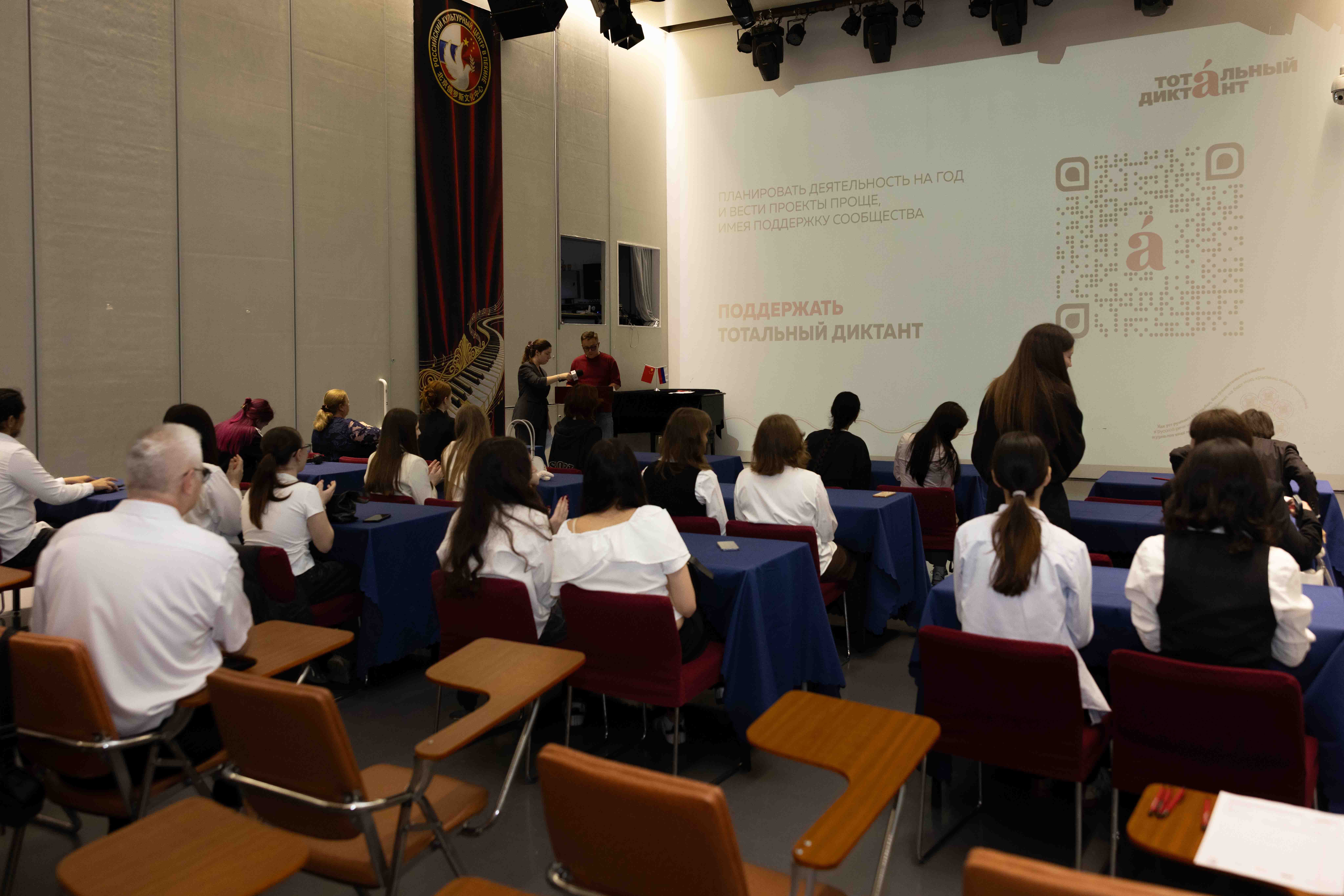 18 апреля в Российском культурном центре в Пекине состоялась ежегодная просветительская акция «Тотальный диктант». Участниками стали соотечественники, ученики школы при посольстве России, а также жители китайской столицы. Всего в написании диктанта приняли участие 30 человек.