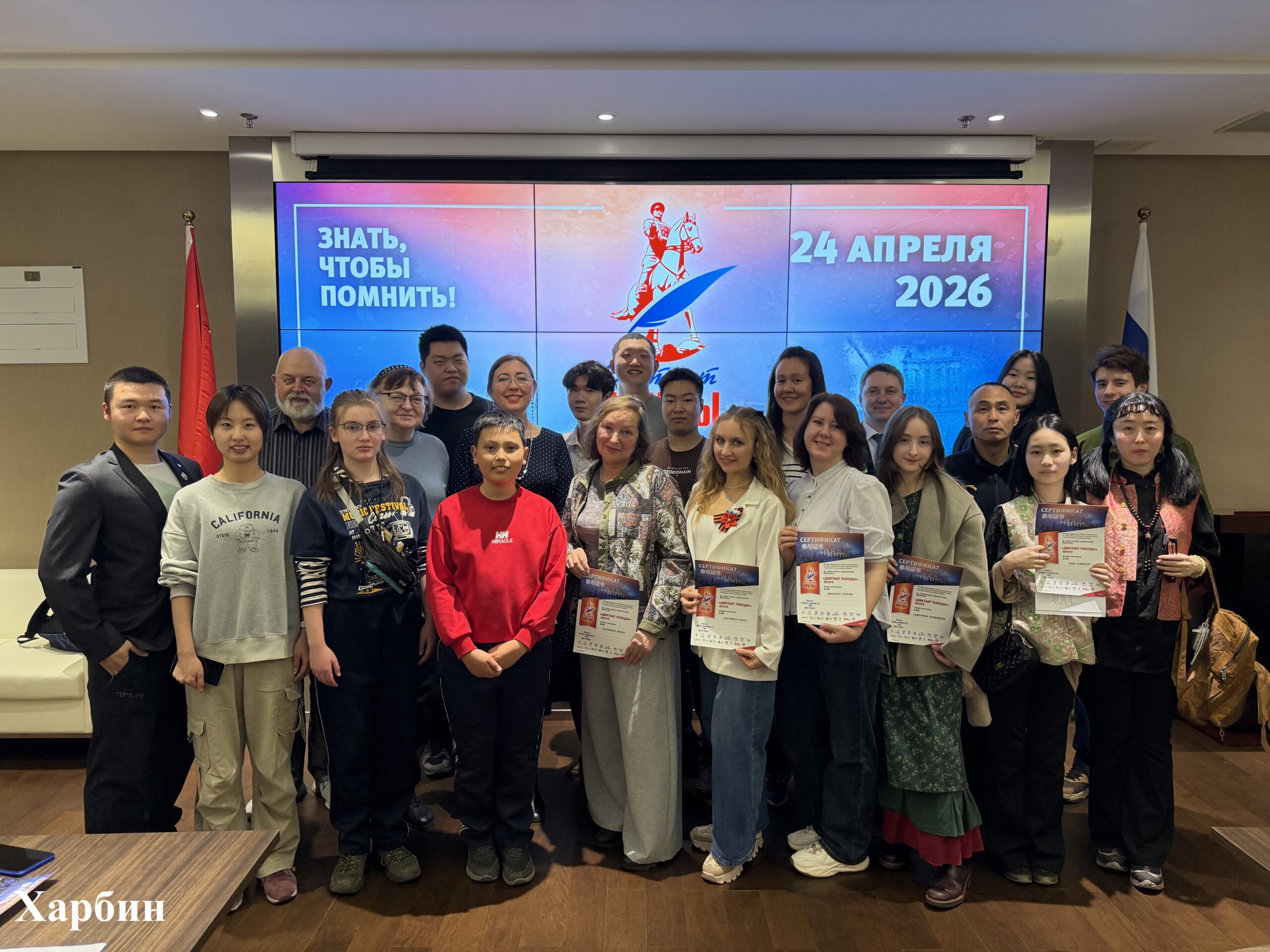 26 апреля по всей России и за рубежом прошла международная акция «Диктант Победы». В Китае работали 7 очных площадок. Участники отвечали на 25 вопросов о Великой Отечественной и Второй мировой войнах.