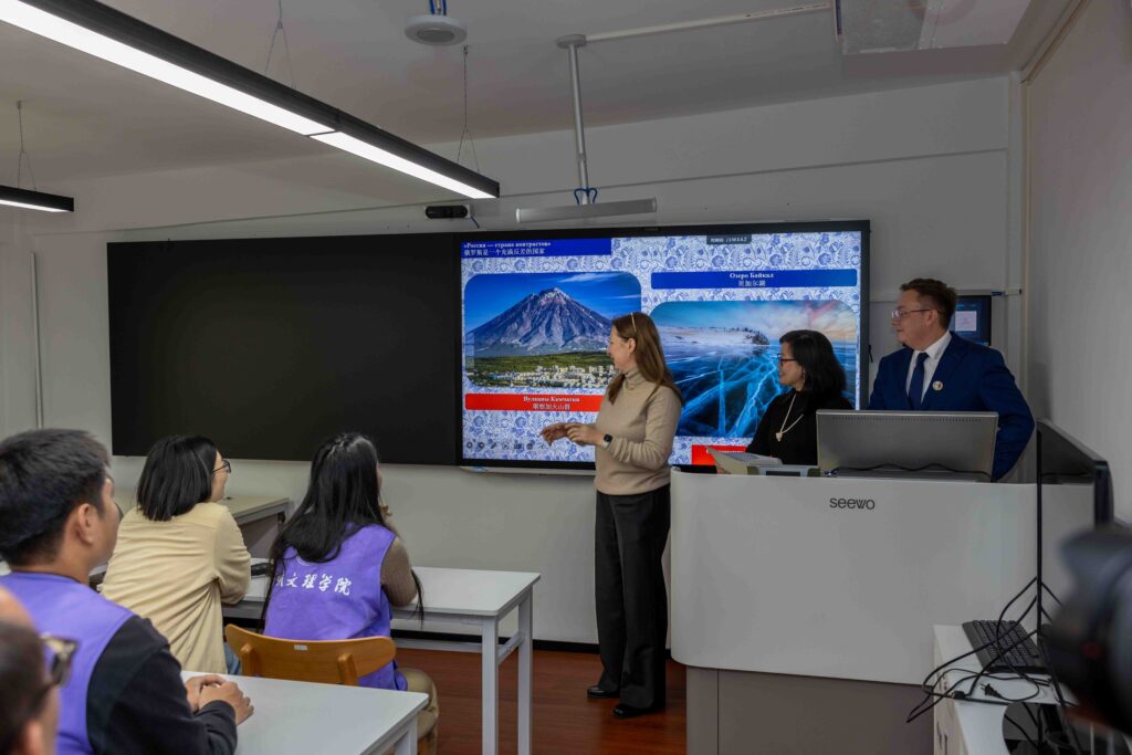 中心工作人员为师生们安排了丰富多彩的文化活动:先是播映了俄罗斯文化中心视频,介绍中心的各种工作方向和精彩活动;随后关于俄罗斯的视频以及中心同事进行的俄罗斯文化推介,更是让同学们对俄罗斯及其文化、艺术、教育、科技、文学、传统、著名城市的名胜古迹、民族美食等有了全方位的了解和认知。
