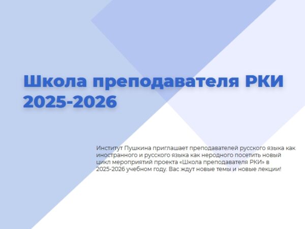 Дорогие коллеги! Институт Пушкина приглашает всех на новый цикл лекций и мастер-классов научно-практического семинара «Школа преподавателя РКИ». В 2025-2026 учебном году состоится 10 встреч (5