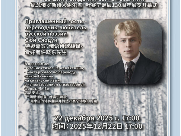 22 декабря 2025 года в Российском культурном центре в Пекине состоялось открытие выставки «Сергей Есенин “Литературное путешествие” (Travel Blog Поэта)», посвящённой 130-летию со дня рождения